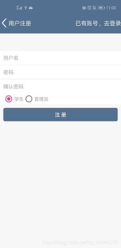 2.按照国际案列,先注册,点击“登录页面”的新用户注册,会跳转到“用户注册”页面。此页面和登录界面比较像,输入昵称和密码即可注册。