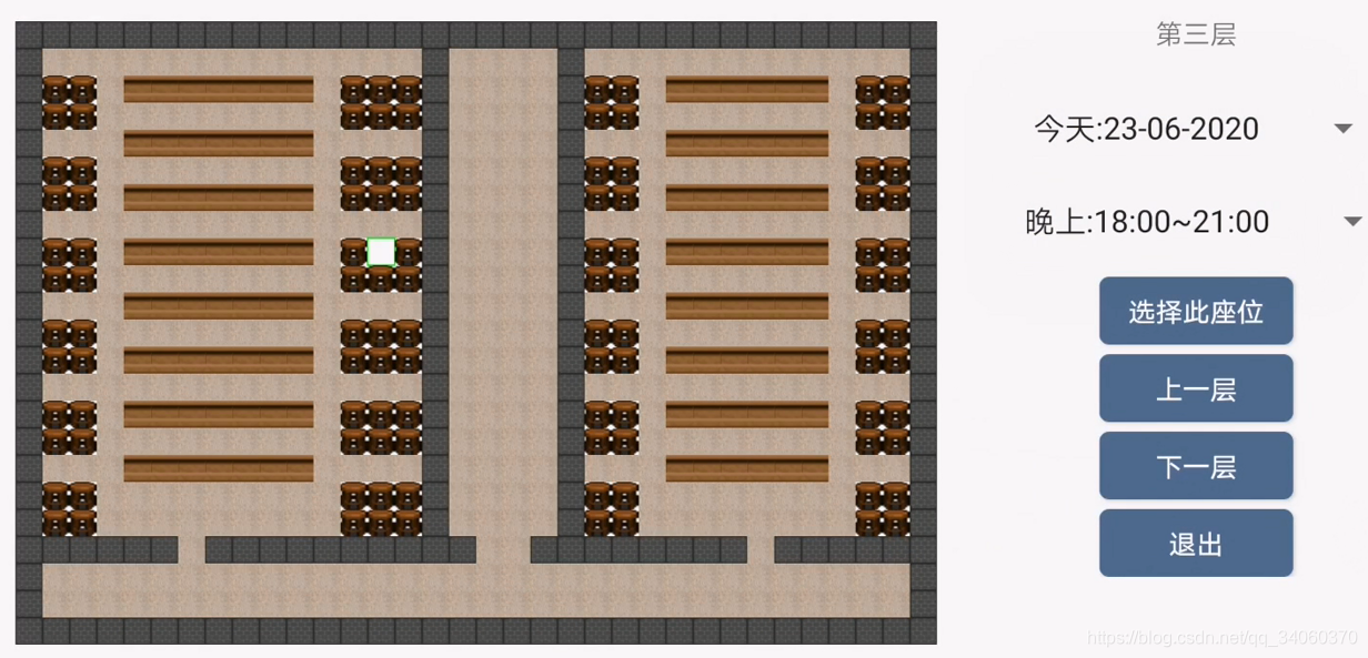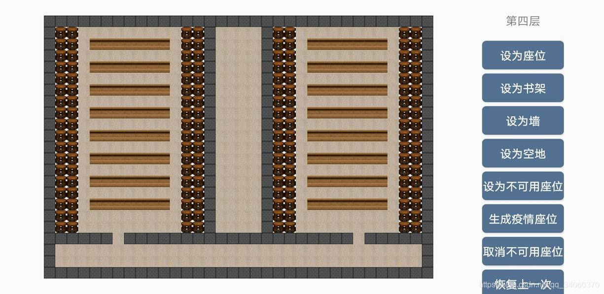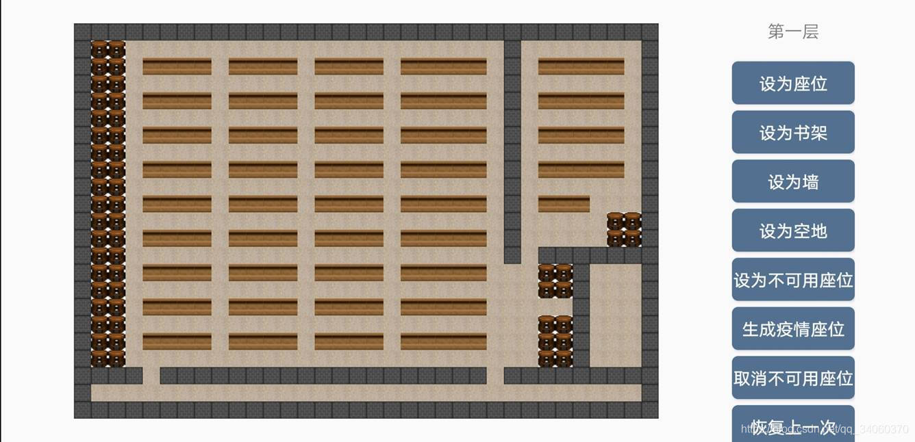 其中,凳子图片代表座位,木头的图标代表书架,深灰色的图标代表墙壁。