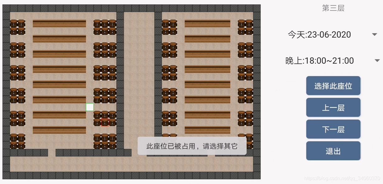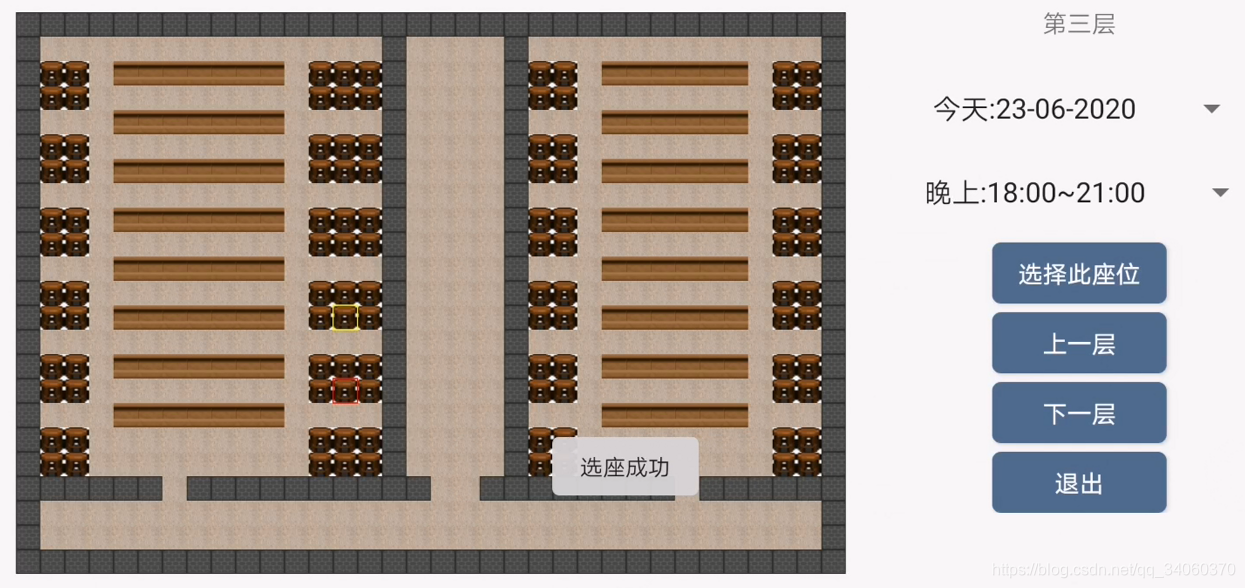 我开发的这个项目是图书馆在线选座,学生在手机app上,对今天明天图书馆的座位进行选座,这样可以避免早起排长队,选座的界面需要2D平面地图化,不是单纯的数字座位。