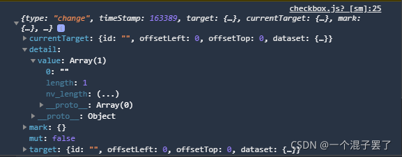 ? ? ? ? 这个代码来源是黑马的36集? 我去测试了一下 发现如果我绑定的点击事件detail是没这个value的 然后我再去删掉data里的value的话 发现detail的value也还是存在的 说明这value是复选框自带的