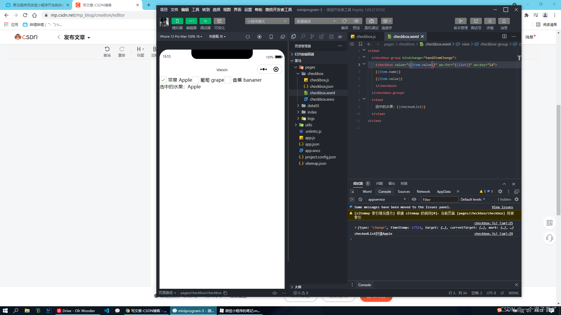 但是一开始我是没加value="{{item.valuie}}"的 也就是说 选中的苹果这一栏是出不来的