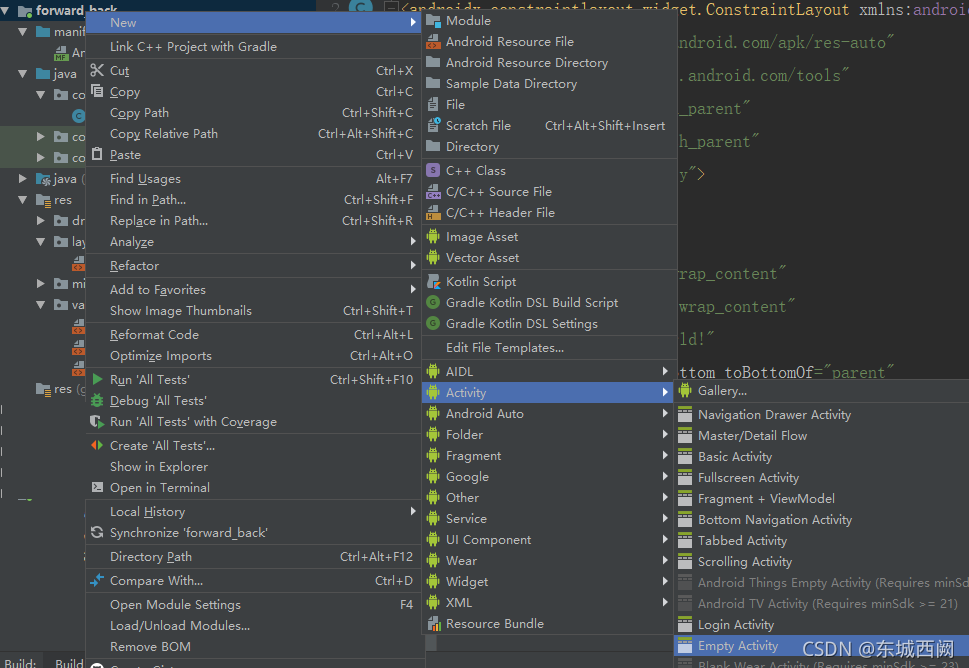 ?右键单击module新建三个Activity分别是MainActivity,NextActivity,ThirdActivity