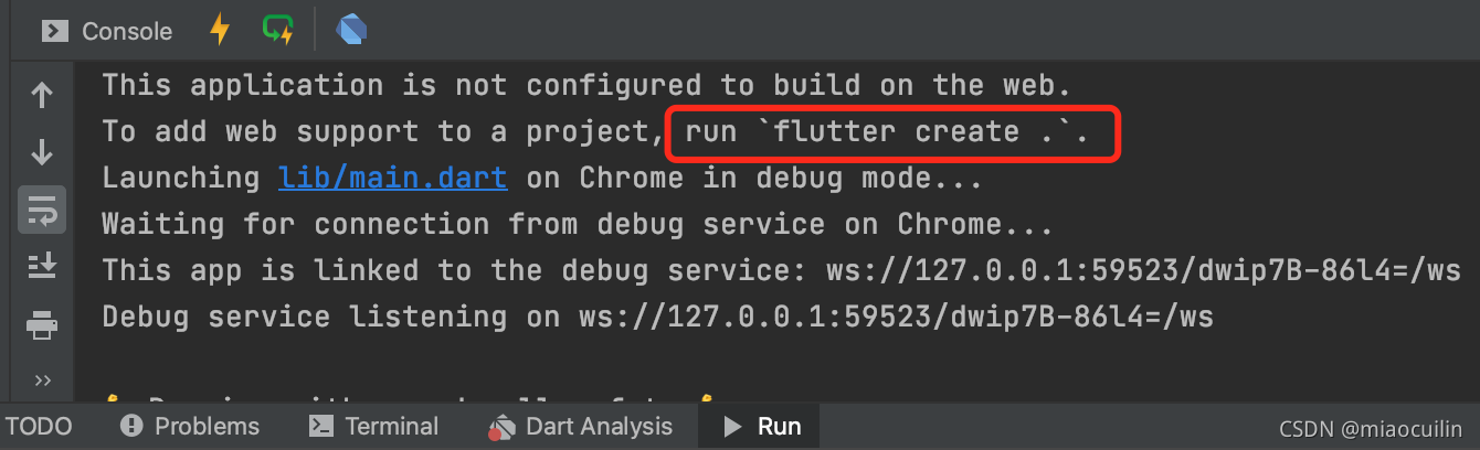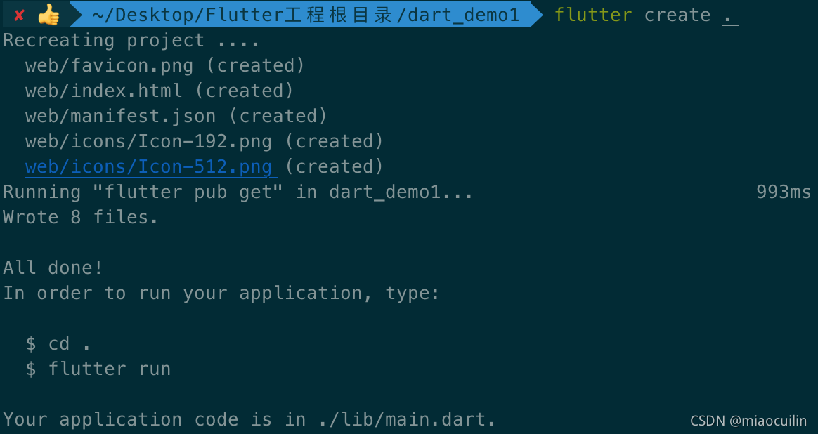 我们只需在终端的该工程目录下输入? 'flutter create .' 即可
