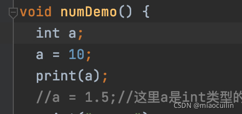 //a = 1.5;//这里a是int类型的,如果赋值double类型数值会报错