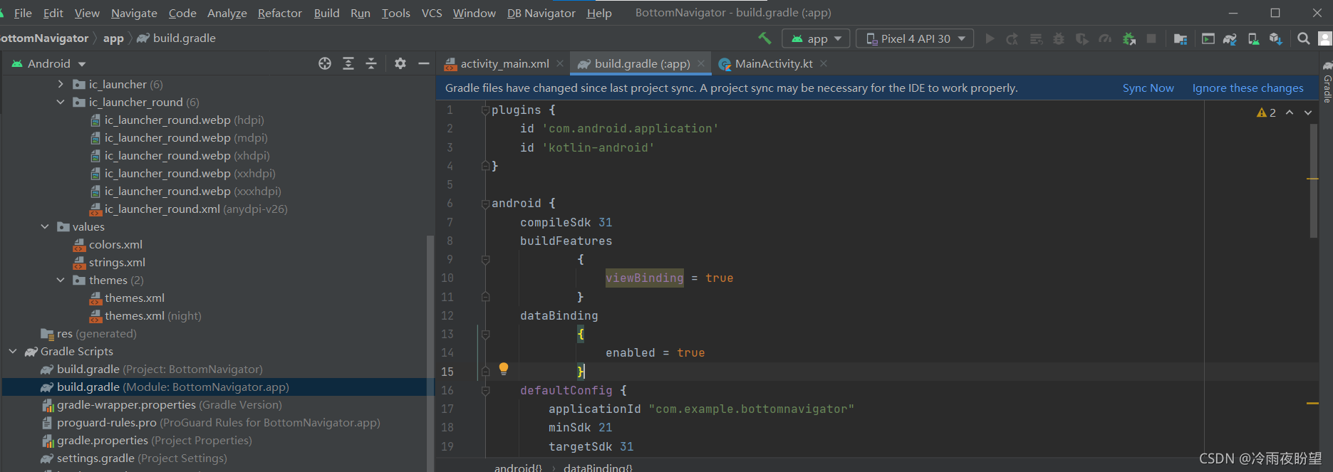 //如果我的布局文件是activity_main.xml,那么我这个布局生成的Binding类的类名便是这个布局文件的驼峰式、、加上Binding