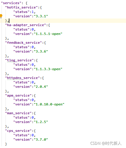 下面这个是配置文件的内容,其中status有1和0,1代表开通,0代表不开通,这里只使用热修复功能,所以只把第一个hotfix_service的status设置为1,其他的不用的都设置为0。?