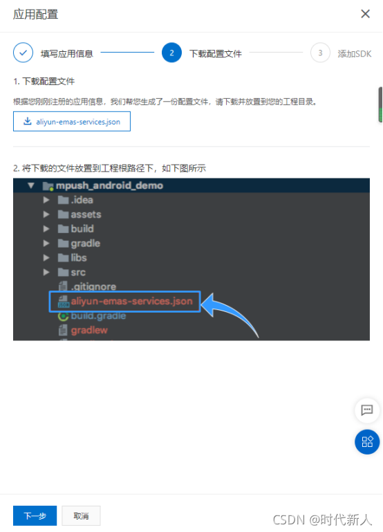 2、上面内容填写完后点击下方的创建应用,进入下面的页面下载配置文件?