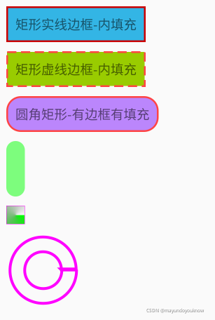 - GradientDrawable可以通过Java代码实现和<shape>标签一样的定义;