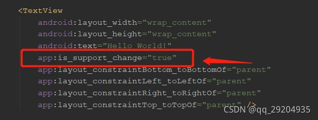 新建属性值  在需要换肤的View加上该属性   现在通过这里就可以打印出,为true的话就是我们要替换皮肤的View,我们可以用一个List保存下来,同时,需要知道要换肤的属性,这个也可以换肤的时候过滤下。 那么我们这时候能确定哪个view需要换肤了,但是我们无法拿到View,因为这个方法没有实现,所以我们仿照源码里面实现了一个类