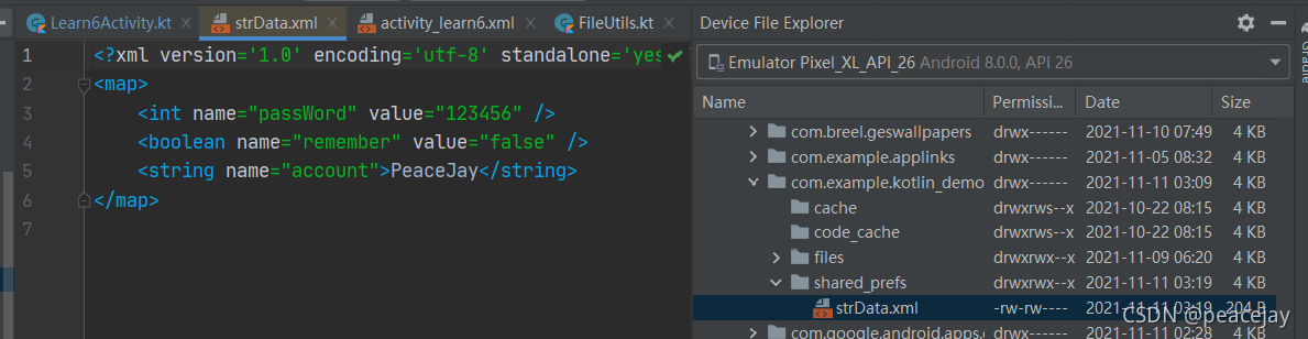 ? 可以看到生成了一个data.xml文件,一般用来轻量存储,比如登录账号信息,效果如下所示: