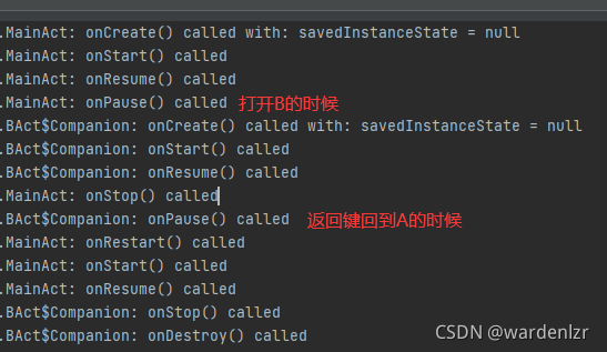 onCreate->onStart->onResume->onPause->onStop(onRestart )->onDestroy 打开AAct再调到BAct 生命周期过程 依次走A的onCreate,onStart,onResume(打开A的生命周期),onPause(调到B) B的onCreate,onStart,onResume 然后A的onStop