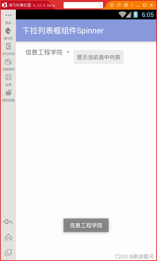 要求:建立一个下拉列表并填充内容,在下列列表的右边建立一个按钮,点击时显示所选中的内容。