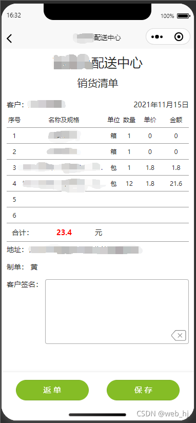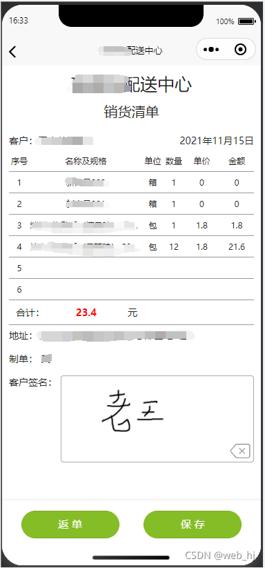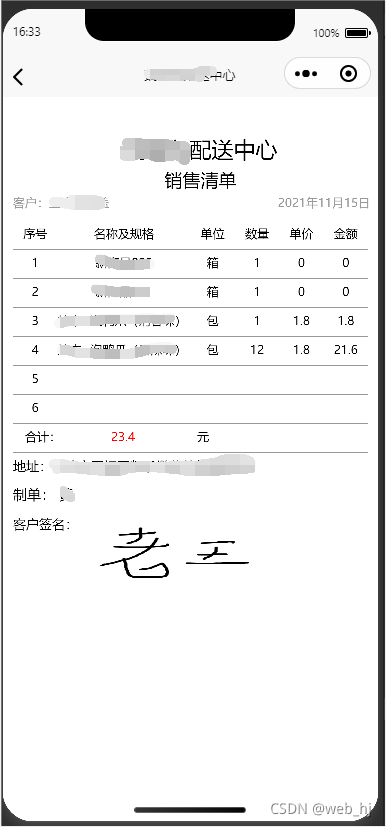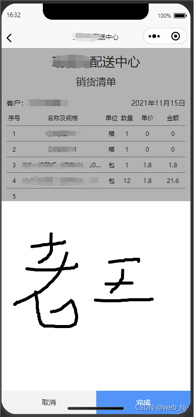 ?图片说明:1:页面结构 上面为清单 下面为客户签名展示区域