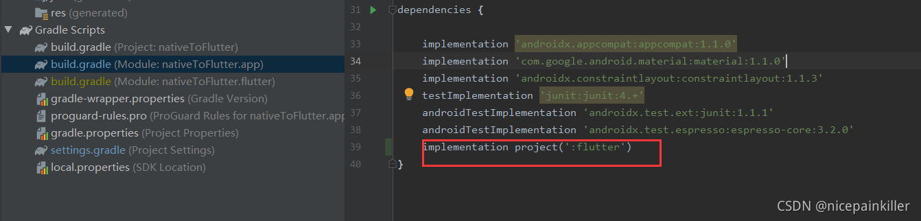 这里我们将 刚刚创建的 Flutter_module 加入到 Android 原生工程中: