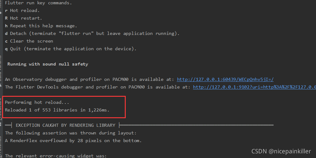 Flutter run key commands.