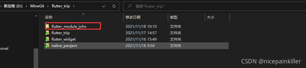 首先你得有 原生 android 工程; 路径如下:D:\MineGit\flutter_trip\native_peoject