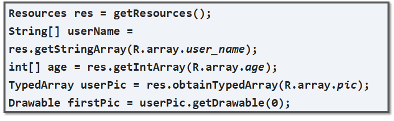 根节点必须是<resources>元素;一个子元素<string>对应一个字符串表示。