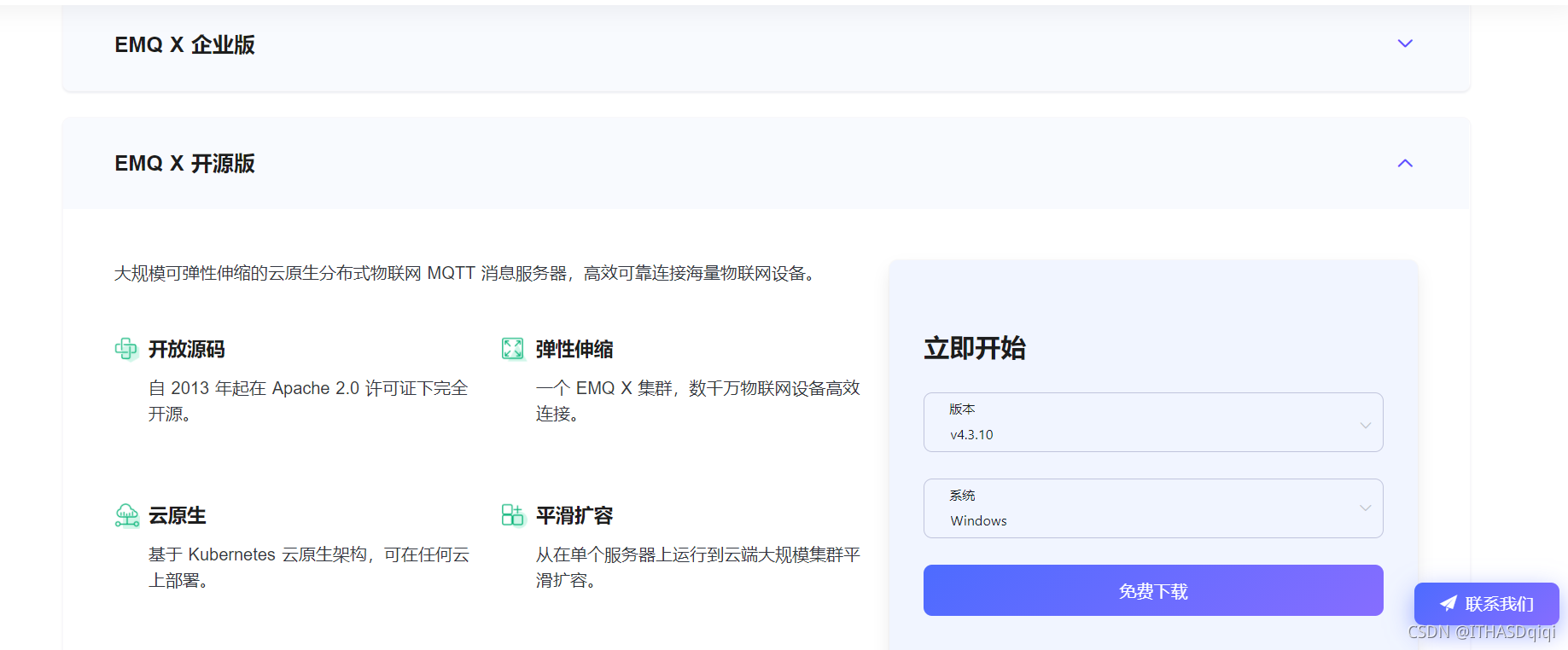 ?点击下载按钮,选择EMQX开源版,选择需要下载的版本号和操作系统windows(如果你是使用linux系统也可以下载相应的centos)