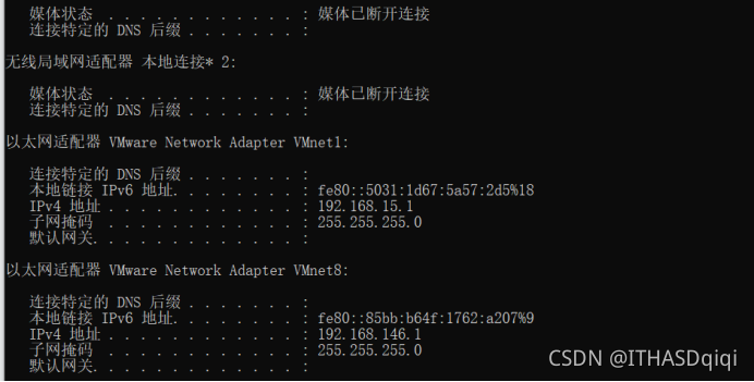 我们接着打开cmd 输入命令ipconfig,可以看到适配器的ipv4的ip为:192.168.15.1