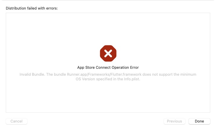 Flutter应用打iOS包,在Validate App的最后一步总是报错如下: