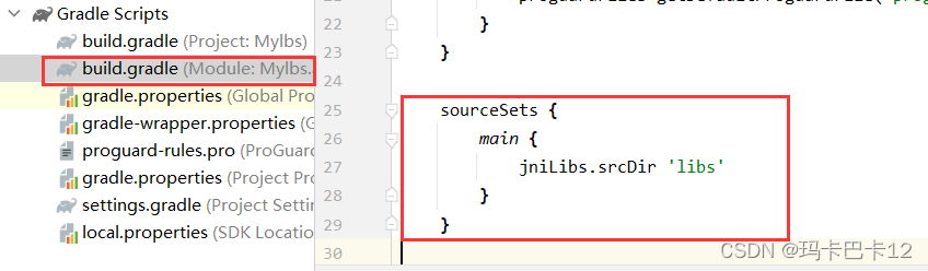 ?在app目录下的build.gradle文件中android块中配置sourceSets标签