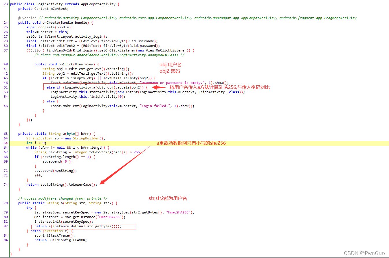 ? ? ? ?LoginActivity.a.overload('java.lang.String', 'java.lang.String').implementation = function (str, str2) {