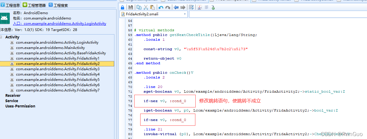 ? ? ? ?var FridaActivity2 = Java.use("com.example.androiddemo.Activity.FridaActivity2");