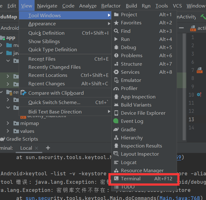 3.配置SHA1和包名 输入命令行和密码,即可获取SHA1等信息; 命令行:keytool -list -v -keystore ~/.android/debug.keystore -alias androiddebugkey输入命令(默认密码为android) 通过applicationId配置包名 4.提交生成AK