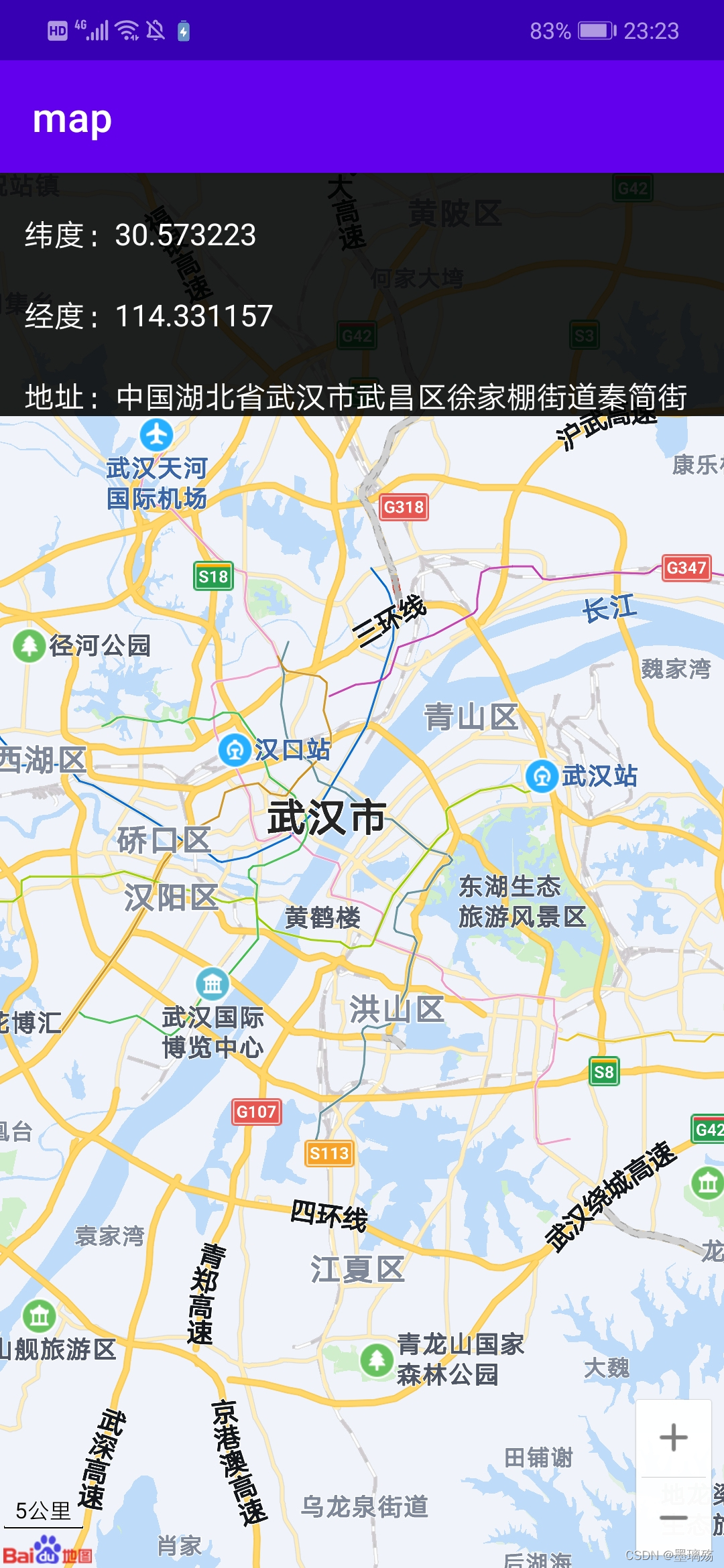 1、实验目的:利用百度sdk开发一个定位app显示当前地址