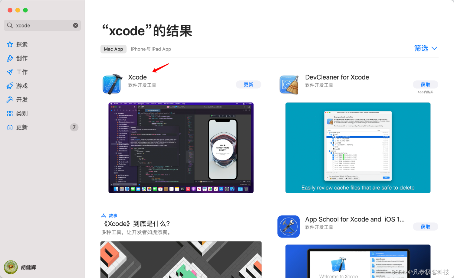 建议从 Mac App Store 进行下载和安装,免费哦~  在 Mac App Store 搜索 Xcode,第一个就是了