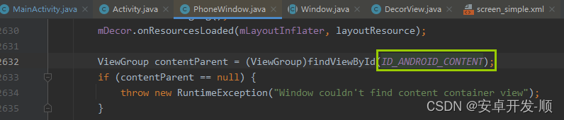 (2)从DecorView对应的布局文件中通过findViewById找出mContentParent