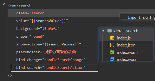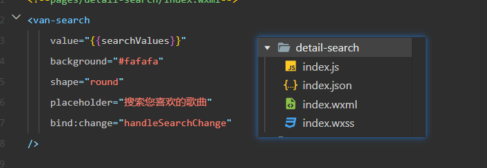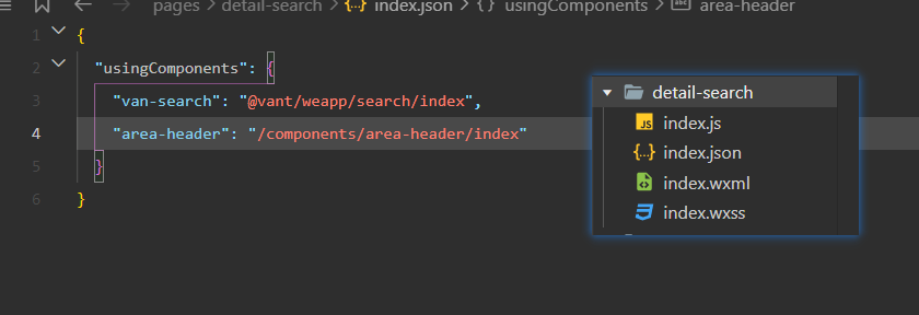 ? ? ? ? detail-search页面使用van-search组件和area-header组件