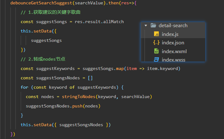 ? ? ? ? ?保存searchValue并发起数据请求将结果保存到resultSongs中