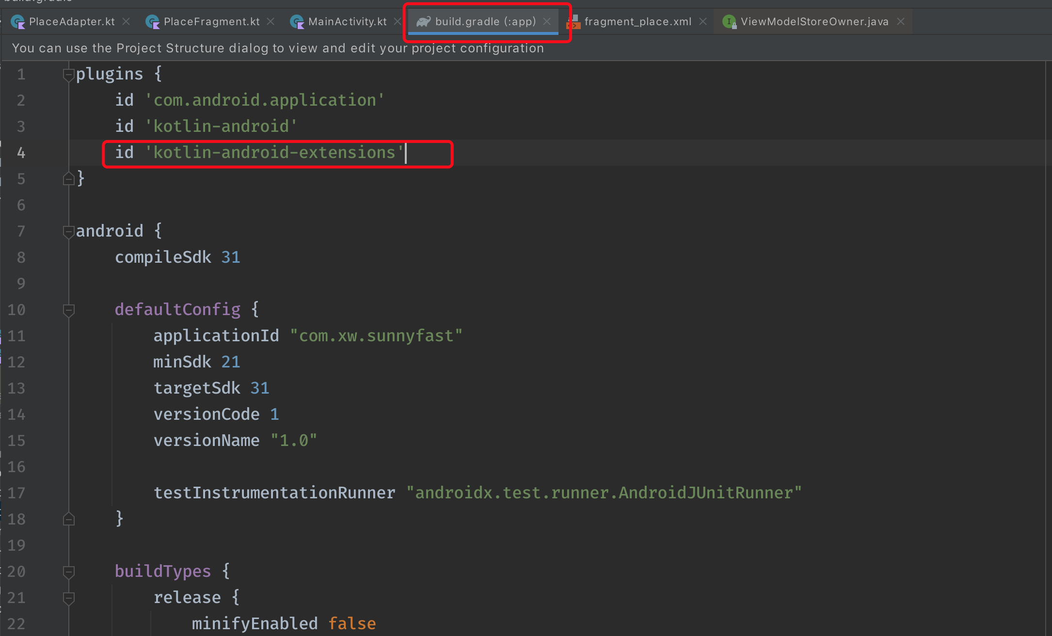 id 'kotlin-android-extensions'