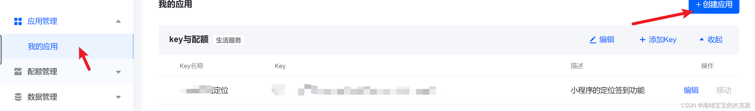 2、注册账号之后,在应用管理创建一个新应用,名字和类型都是任意写的。