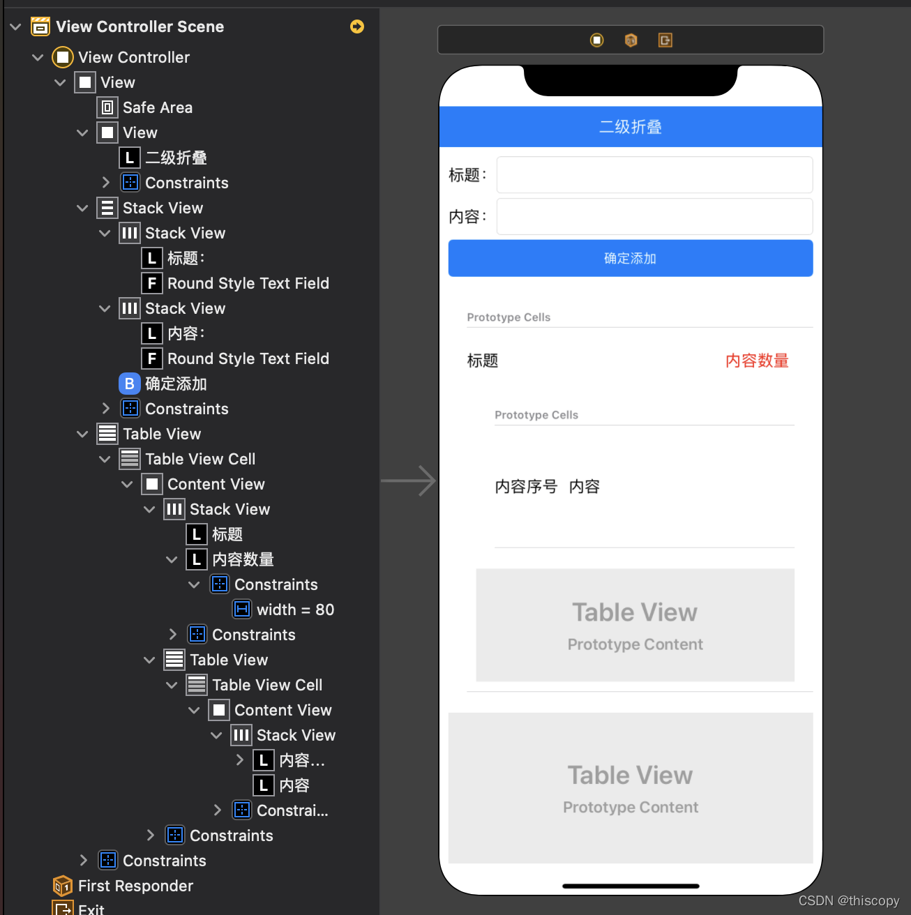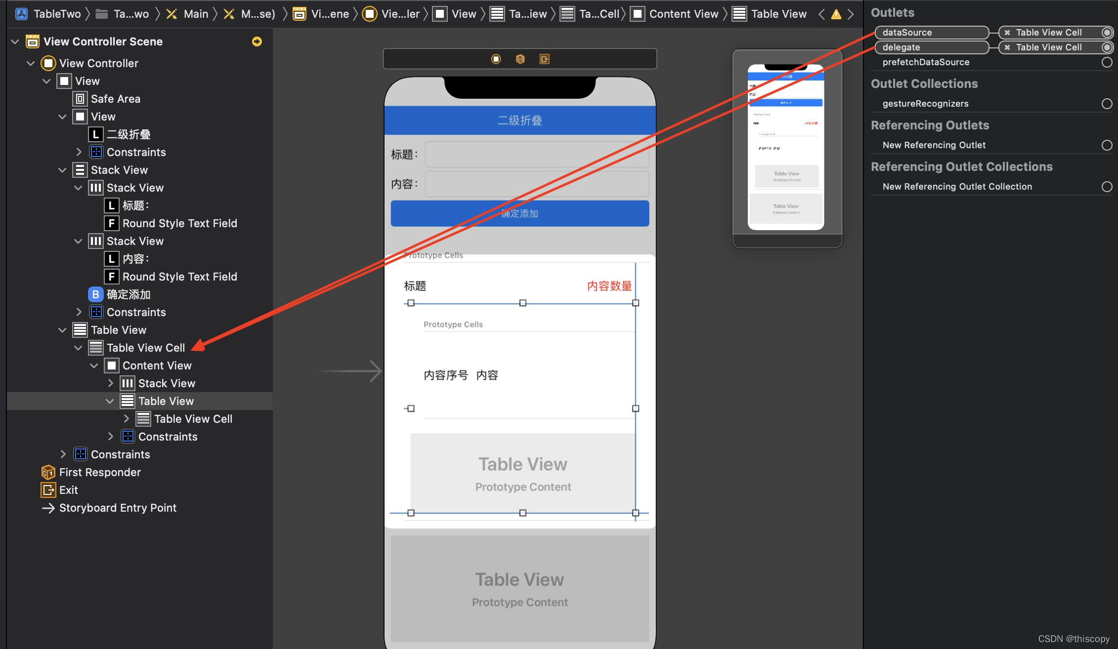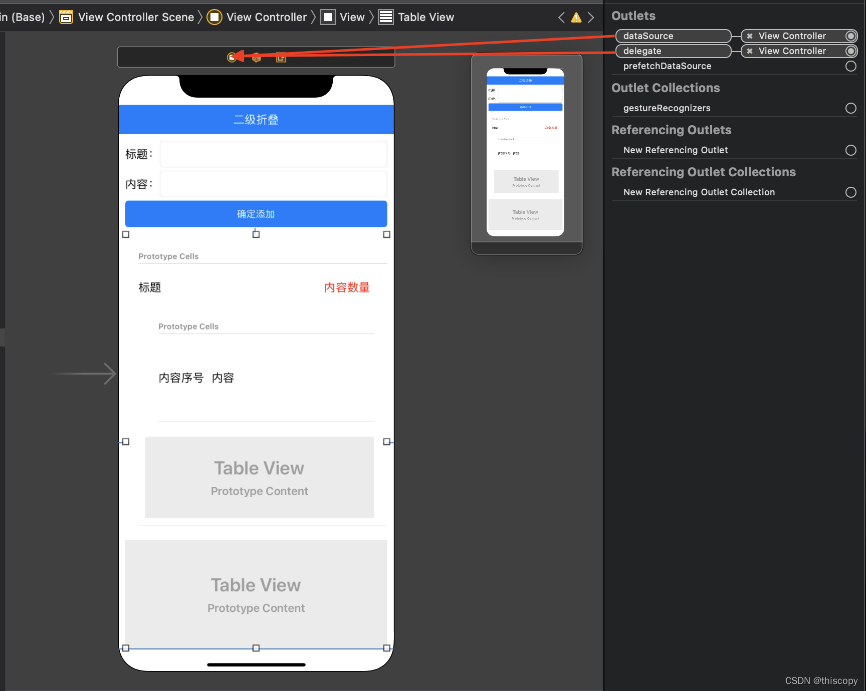 ? ? ? ? 2、外层TableView?dataSource、datagate:直接关联View Controler