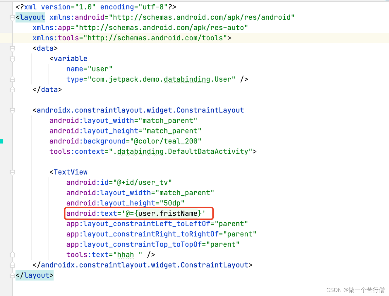 android:text='@{user.fristName??"哈哈哈么么哒"}'