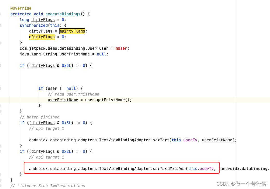 再看看ActivityDefaultDataBindingImpl中的代码 增加了一个TextWatcher
