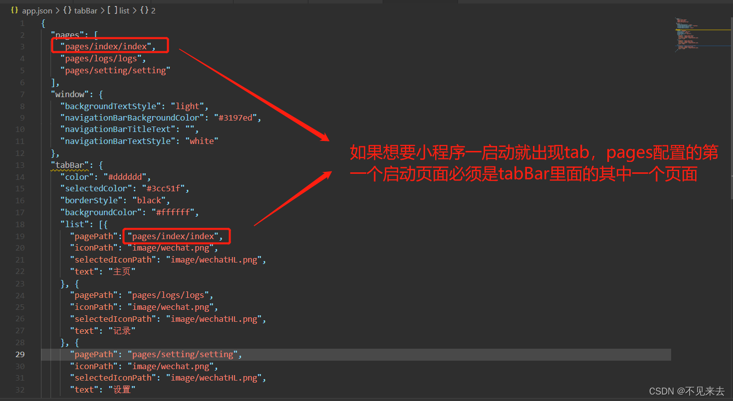 按照对文档的理解我直接把下面的配置整到了app.json下面,结果发现tabBar根本没出来,搞了半天没明白问题在那里。文档也没有什么详细的说明。