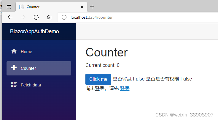 ? 手动改URL为:BlazorAppAuthDemo http://localhost:2254/login 自己玩吧:) |