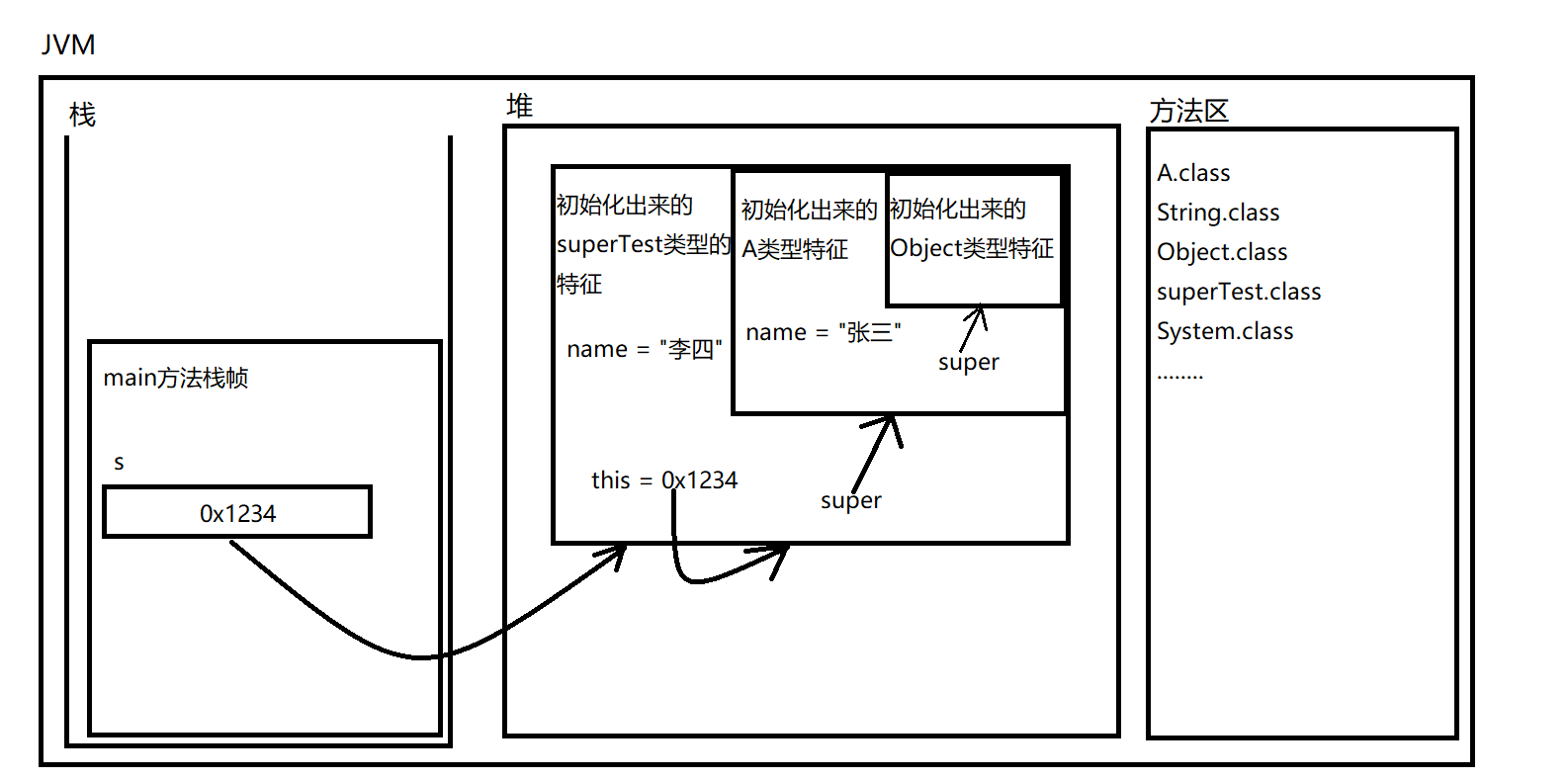 (3)子类中可以通过super.xxx的方式,调用父类型特征(实例变量);通过==super.xxx()==的方式,调用父类型方法(实例方法)。