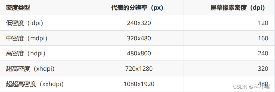 安卓手机对于每类手机屏幕大小都有一个相应的屏幕像素密度:
