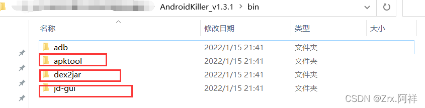 2.这个时候很大可能是因为,你的Androidkiller集成的工具的版本太低,跟不上安卓的版本了,所以去更新,打开Androidkiller的bin文件,把框选上的全部更新一遍