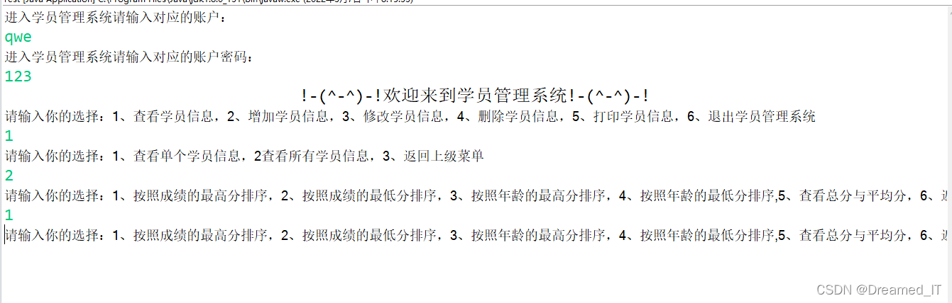 System.out.println("请输入你的选择:1、修改姓名,2、根据姓名修改学号,3、根据姓名修改年龄,4、根据姓名修改分数,5、根据姓名修改性别,6、返回上级菜单");