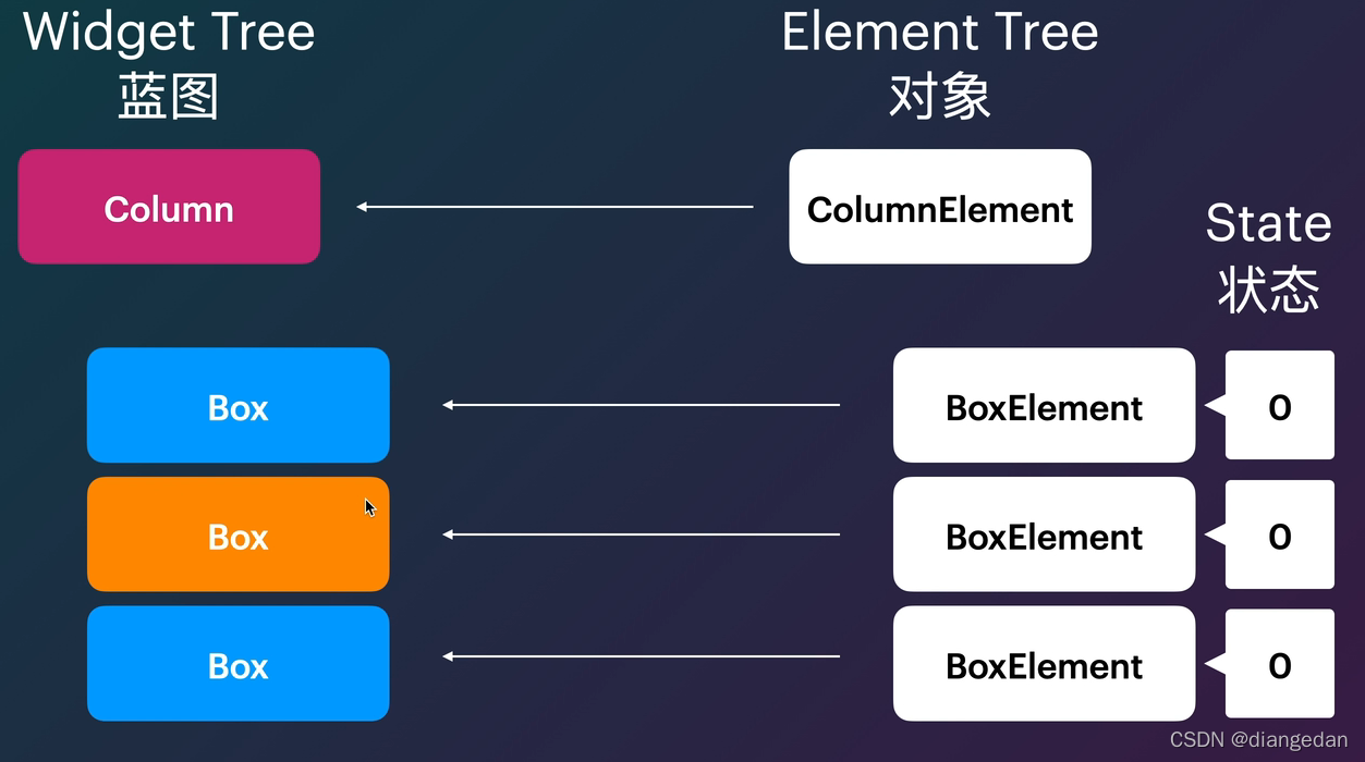 在Flutter的框架里,Widget是不可变的(一但建立后,在运行时就不可变). 但Status可以在运行的时候进行改变. 每次setStatus,就会通知Flutter创建一个新的Widget,把旧的替换掉.而不是去修改旧的Widget(Widget不可变). 在替换旧的Widget的时候,就会替换Widget Tree的内容
