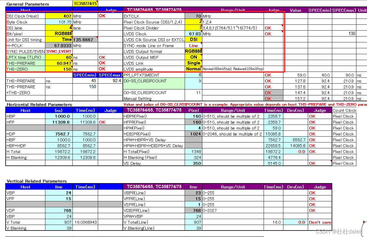 ? ? ? ? 根据系统频率,引脚个数等参数,配置上图黄色区域参数,具体我就不过多描述了,使得后边的显示Judge为OK,如果不为OK,则需要调整参数得到OK结果。