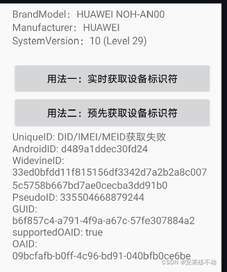 git:GitHub - gzu-liyujiang/Android_CN_OAID: 安卓设备唯一标识解决方案,可完全替代移动安全联盟统一 SDK 闭源方案。包括国内手机厂商的开放匿名标识(OAID)、海外手机平台的安卓广告标识(AAID),另外也提供了 IMEI/MEID、AndroidID、WidevineID、PseudoID、GUID 等常见的设备标识的获取方法。