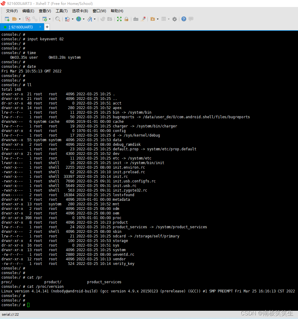 串口: console:/ $ su console:/ #? console:/ # echo "0 0 0 0" > /proc/sys/kernel/printk console:/ #?