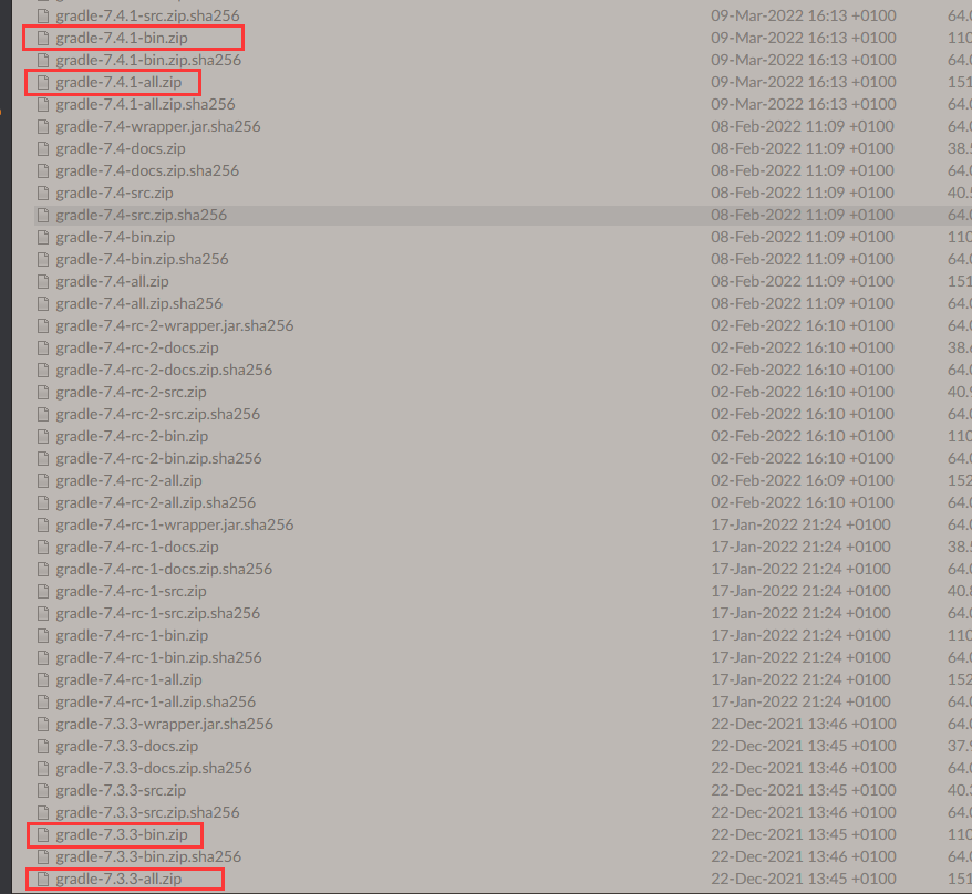 注意,不是Android Gradle plugins(gradle插件),而是gradle包;Android Gradle plugins在build.gradle文件中设置后,就自动下载了,我们只需要知道“各版本”(下面会说)对应关系就好了; 一般下载bin.zip或者all.zip;先下载下来,待会儿要用