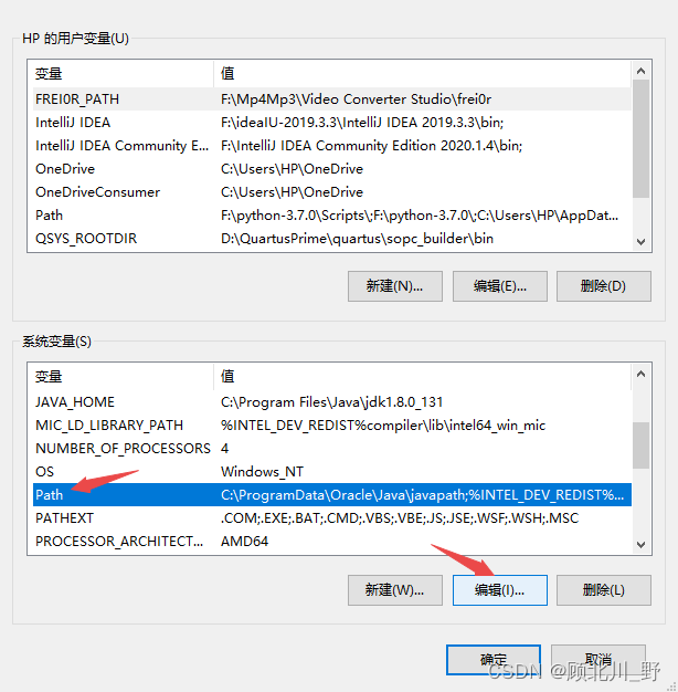 6.在Path路径中编辑添加三条安装路径;点击确定,再点确定